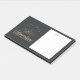 Landscape orientation post-it notes with a gold colored illustration on a black-gray background. Designed with an illustration of a mountain with the suns rays shining outward from behind. Typography says: Life is an Adventure explore dream discover.