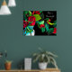 Life is Beautiful quote with a fine art still life inspired poster print with lovely floral design from an original watercolour art painting of red camellia flowers with green foliage by artist Sacha Grossel. These flowers are colourful, vibrant and bright and this floral art colourful botanical design would look beautiful in any environment. A brightly coloured original art piece of wall art with black neutral customisable colour background.