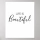 Life Is Beautiful Poster. This is a beautiful and minimalist black and white life quote print.