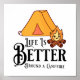 Camping quote. Life is Better around a campfire. Cute Kawaii style cartoon tent and campfire.