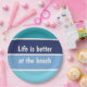 A blue horizontal striped pattern and the text: Life is better at the beach Click to personalize and add a name or a funny word