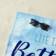 Beautiful watercolor landscape of beach scene with sandy path, leading to water, palm trees and a sail boat. Features the quote Life is Better at the Beach. Add a name to make it special (and to make sure no one takes your pretty towel!)