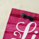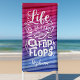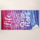 Life Is Better In Flip Flops Cute Personalized Beach Towel. This design features a cute typographu quote against pink and purple abstract waves.