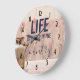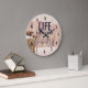 A kitchen clock with a rustic country design. An old rusting milk can. Wheat and faded red poppies in the background set against a faint wood panel. Wood is just an image, not real. Text says Life is better in the country.