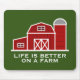 Life is better on a farm red barn house custom Mouse Pad. Personalized computer accessories for home or work. Fun Christmas or Birthday gift idea for friends, family, kids etc. Green or custom background colors. Add your own funny quote optionally.