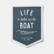 Personalized wall decor for a boat house or lake house: Life is better on a boat! Blue Pennant with a nautical knot illustration and custom family name. All colors - including the illustration - can be changed in the design tool if you like. Also, all text elements can be customized so you can change the text to fit a boat house, marina clubhouse, beach house etc.
