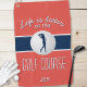 Cute design features the quote "Life is better on the GOLF COURSE!" Modern shadowed typography design in white and blue is on a trendy red background with with realistic golf ball image and female golf silhouette. Color of background and fonts are easily changed in Zazzle's amazing design tool section where you can easily add customization with name or initials.