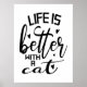 Add some flair to your home decor with this cute life is better with a cat black and white modern typography poster! Great for any animal lover!