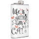 This small flask is really cute. Good for taking water or other liquids with you. My only complaint is the top is somewhat difficult to get back on after you screw it off. The printing is really good on the flask. My design came out just right!
