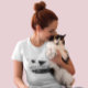Show off your love for cats with this charming black-and-white design featuring the funny quote, "Life is better with a cat," alongside a playful cartoon cat. Perfect for casual wear, this T-shirt combines comfort and humor to celebrate your feline friend. Available exclusively from Lumirala's store, it’s a must-have for proud cat lovers everywhere!