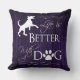 Celebrate your love for furry friends with this Purple Life is Better with a Dog Throw Pillow, a heartwarming addition to dog theme home accents crafted for passionate dog lovers. This charming pillow features a playful white dog and white paw print set against a cozy rustic wood background, evoking the warmth of a countryside retreat. The heartfelt phrase “Life is Better with a Dog” is showcased in a blend of elegant script and modern typography, framed by delicate elegant scrolls for a touch of charm. Perfect for dog owners and enthusiasts, it’s an ideal accent for sofas, beds, or cozy reading nooks, bringing a dog-loving vibe to living rooms or bedrooms. Show your devotion to your four-legged friend with this dog theme home accent and make every moment cozier. Order now to add a pawsitively perfect touch to your home!
