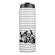 NewparkLane - Black and white thermal tumbler, with a black cat and slogan 'Life is better with cats' in fun typography, against a grey and white striped background.