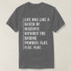 My 11 yo wore adult XL (5’7” 165#). The 8yo is small framed. She wore adult small and tied it in the back. Grandma wore adult large with long sleeve shirt underneath. Tall girl adult medium. Dark haired male adult large. Good quality dark Heather gray, Gildan brand shirt. -it was next up from basic choice and cost about $20 per shirt. Not too thick or thin. Washed and dried well, no major shrinkage. Not see-through. Can wear a bra under it fine. Screen print is just as shown and well done, front and back.