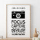 Life is like a camera. Focus on what's important. Capture the good times. Develop from the negatives. And if things don't work out, take another shot. Inspirational quote poster.