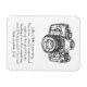 A black and white magnet with a picture of a camera with an enlightening and motivating quote about life and how we should tune our perspective. "Life is like a camera. Focus on what’s important, capture the good times, develop from the negatives, and if things don’t turn out – take another shot." Author of quote is unknown. Design and quote is great for photographers or anyone who needs a pick me up in life.