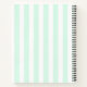 Spiral notebook funny quote with an illustration of a 3 scoop ice cream sundae with colorful sprinkles. An ice cream cone with scoops of chocolate, strawberry and vanilla. A bowl of neopolitan ice cream with a cherry on top. Strawberries and a pineapple fruit sit beside the bowls. Mint green and white stripes pattern in the background.