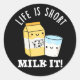 LIfe Is Short Milk It Funny Drink Pun Dark BG Classic Round Sticker