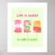 "Life is short, so make it sweet" Motivating and inspiring quote with a mint cream background, and a yummy ice creams.