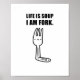 Sometimes life is soup, and I am a desperate fork trying to scoop things up. The perfect funny gift for goofy young people.
