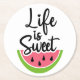 Life is Sweet Cute Fruit Summer Party Watermelon Round Paper Coaster