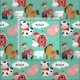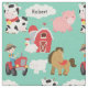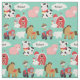 Fabric kids will love, features an aqua background with various farm animals as well as the farmer driving a red tractor, a cloud you can customize with your child's name, and a red hay barn and silo. Also features a brown horse, black and white spotted cow, pink pig, white lamb, and a chicken!