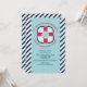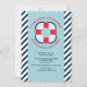 A nautical theme invitation with a navy-blue and white stripe background, a light-blue overlay panel and a red, white and blue life preserver. Perfect for nautical-theme birthday parties, pool parties and baby showers. (<a href='http://www.freepik.com/free-vector/birthday-card-with-nautical-elements_886557.htm'>Designed by Freepik</a>). <br/><br/>The card is easy to customize with your wording, font, font color, paper shape options and choice of six paper types.<br/><br/>Not exactly what you're looking for? All our products can be custom designed to meet your needs at no extra charge.<br/><br/>Simply contact us at heartfelthelper@gmail.com.<br/><br/>Coordinating products available: Just ask us!