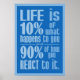 "Life is 10% of what happens to you and 90% of how you react to it".