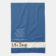 Waffle weave towel is Royal Blue colored with White & Brown text and striping on a whimsical towel with a cute slant on life. Customize or buy as is.