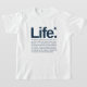 Life typography with a satirical asterisk and fine print. Dark-humor disclaimer that jokes about life's terms. For fans of sarcastic, witty, small-print humor.