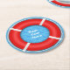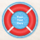 Red life preserver design on blue curley wave background to personalize for fun custom nautical themed party products.