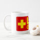 Lifeguard mug. Vibrant yellow and red lifeguard logo tea and coffee cup.