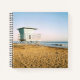 Classic beach scene of a lifeguard tower looking out to sea with a soft haze of dusk approaching in Santa Cruz, California.