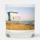 Classic beach scene of a lifeguard tower looking out to sea with a soft haze of dusk approaching in Santa Cruz, California.