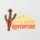 Embrace the spirit of exploration with this quirky and creative graphic from the animated movie "Gracie & Pedro: Pets to the Rescue!" Featuring a whimsically dressed cactus set against a desert backdrop with a mountain and sun, this image captures a playful and adventurous tone. The fun text "Life's a Desert Adventure" complements the scene, inviting viewers to dive into the adventurous world where even the unexpected, like a cactus exploring the dunes, brings joy and excitement. Ideal for promoting outdoor or desert-themed episodes, this graphic embodies the light-hearted and adventurous themes of the film.