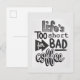 Send a little humor (and caffeine love!) with this “Life’s Too Short for Bad Coffee” postcard. Featuring elegant calligraphy and a witty message, it’s perfect for coffee lovers, friends, coworkers, or anyone who enjoys a good laugh. Great for snail mail, gifting, or framing as a fun little reminder to enjoy life’s simple pleasures!