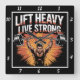 Lift Heavy Live Strong Barbell Square Wall Clock