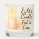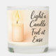 Enjoy peace and tranquility with our "Light a Candle Feel at Ease" scented candle. This candle is specially designed to bring a relaxing and comforting atmosphere to your home or office. The candle features a simple and elegant artistic design that combines a warm candle image with an inspirational quote that encourages relaxation. It is perfect for creating a calming environment for meditation, reading, or simply enjoying moments of quiet. It makes a wonderful gift for loved ones or a unique addition to your own collection. Let this candle light your path to inner peace and comfort.