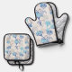 Light and Airy Hydrangea Floral Pattern Oven Mitt & Pot Holder Set