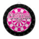 Pink and Black Colored with White and Black Outlined Pink Text Custom Dartboard Including 6 Brass Darts