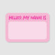 A pink design with a hot pink "HELLO MY NAME IS" whimsical heart typography design.
