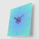 A very plain aqua/green wall clock . A mauve circular centre. and light blue numerals. Available in square and circular shapes.