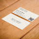 Simple light beige linen texture with black customizable typography. Social media icons and a QR Code.