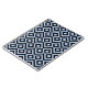 This bold light blue and black geometric pattern is an original ornamental design. Pale blue diamonds with black borders are surrounded by baby blue meanders which angle around them. Black zigzags separate the winding light blue paths and offset diamonds.