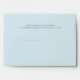 Light blue envelope with personalized return address on back flap and burlap print design inside to compliment our wedding invitations. Outside of envelope can be changed to any color to compliment your wedding.