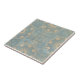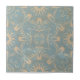 This ceramic tile is a beautiful blend of tradition and artistry. The base color is a tranquil shade of blue, providing a serene backdrop for the intricate golden patterns that adorn its surface. These designs are a symphony of floral and geometric motifs, arranged symmetrically to create a harmonious aesthetic. The beige or cream patterns have a slightly distressed finish, adding a touch of rustic charm and giving the tile an antique look. This element of wear enhances the character of the tile, making it a unique piece that could add a touch of elegance to any space. The tile’s design is anchored by distinct star-like shapes at each corner, while the center is dominated by more complex intertwined motifs. This careful arrangement of patterns adds depth and visual interest to the tile, making it not just a functional piece, but a work of art.