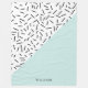 Fun and stylish black and white Memphis pattern design with a light blue accent.