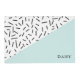 Fun and stylish black and white Memphis pattern design with a light blue accent.
