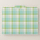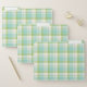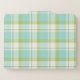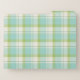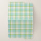 Trend plaid pattern spring addition with light blue and green stripes on white.