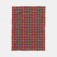 Fleece blanket with a Scottish plaid pattern in light blue, coral red, and green with yellow and white highlights. Traditional family tartan for clans Foster and Forrester. Colors represent dyes used in early textile production. Choose from three sizes.