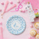 Light Blue And White Bunny Pattern Happy Easter Paper Plates